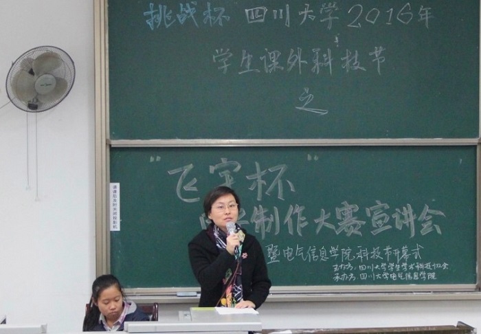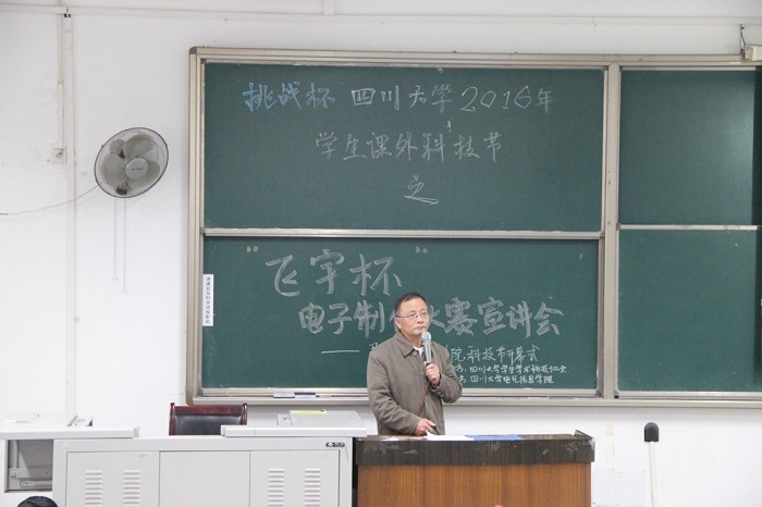 2016年11月6日上午10时,电气信息学院2016年科技节开幕式暨“飞宇杯”电子制作大赛宣讲会在江安校区综合教学楼C座105教室隆重举行。本次活动由“挑战杯”探花视频