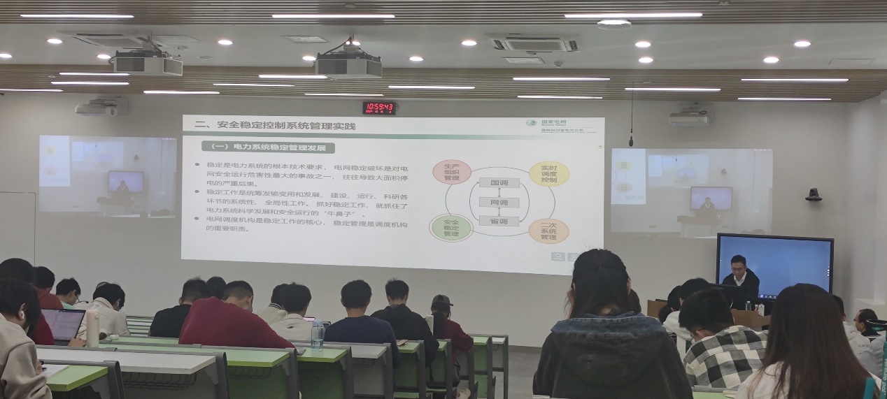 廖斌杰专家主要基于四川省电网现状,从西南与四川省电网基本情况及安全稳定控制系统管理实践两个方面进行了介绍。首先,廖斌杰专家分析了四川电网跨区通道情况、西南各省级电网特点、四川省内外电源情况以及电网运行情况,客观指出四川电网的优势与需要提升的地方;其次,廖斌杰专家就四川电网的特点介绍了电力系统稳定管理发展、电力系统稳定性分类、电力系统三道防线与电力系统安全稳定自动装置等四川电网的安全稳定控制系统管理实践情况;最后,廖斌杰专家结合《电力系统安控与自动装置》课程,讲解了课程知识在实际工程中的运用与实践。