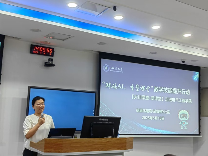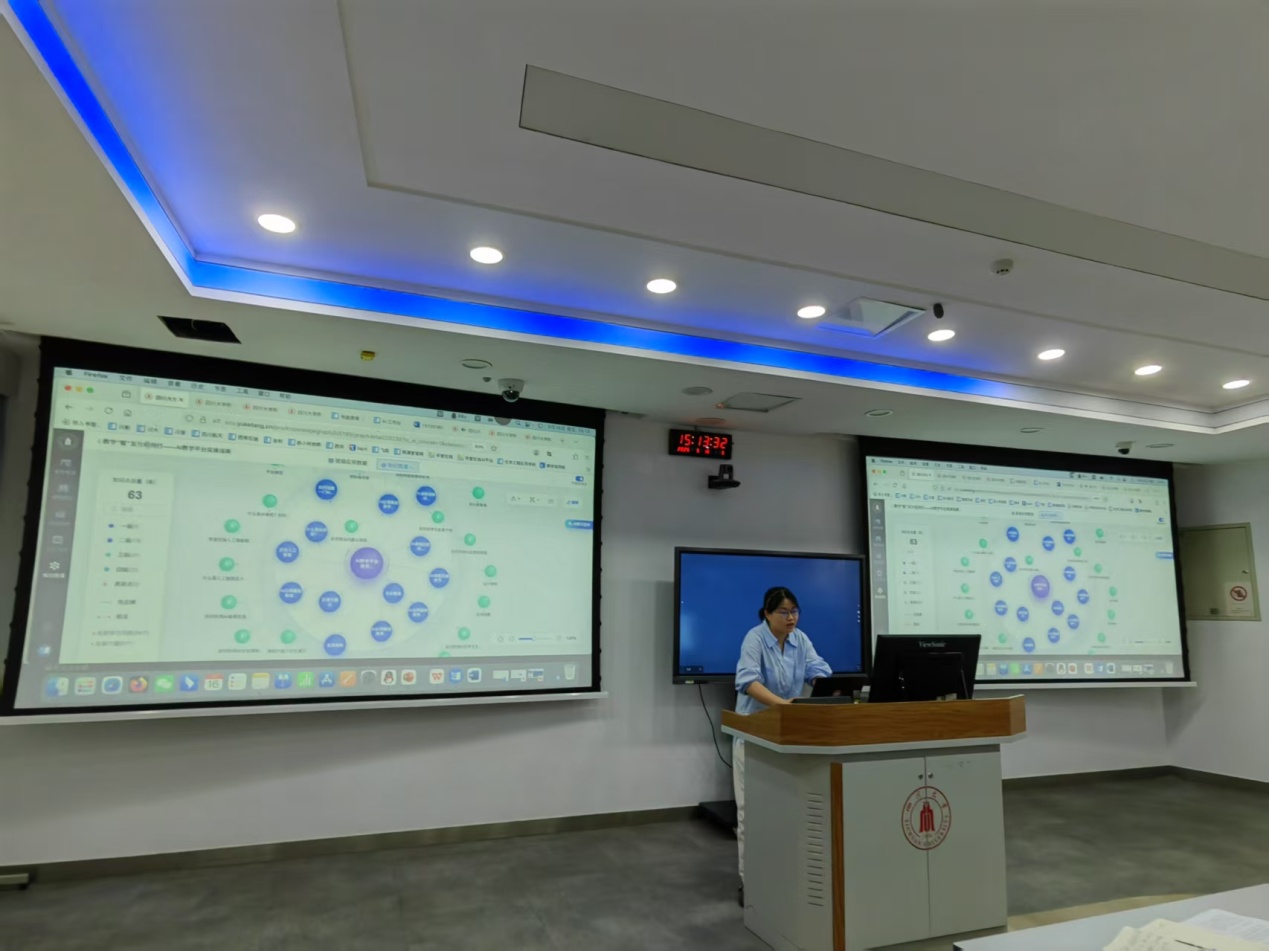 智慧教育平台“大川学堂·爱课堂”的基本功能与应用,以及课程智能体的建设。她们通过生动的案例和实操演示,展示了该平台在课前备课、课中互动、课后学情分析等方面的便捷性和高效性,让教师们深刻感受到了AI技术在课程教学中带来的全新教学思维和教学模式。
