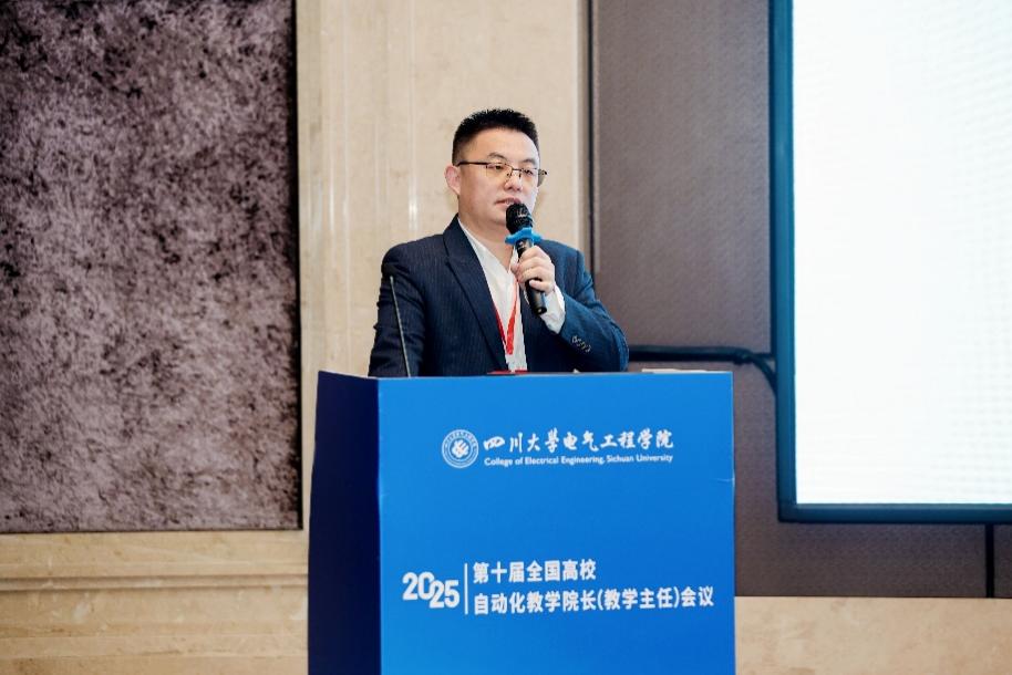 王艳丽代表四川省教育厅高教处对会议的召开表示祝贺。她指出四川省正深入贯彻落实党的二十届四中全会精神,持续优化高等教育布局,深化评价改革与综合试点工作,着力构建基础学科拔尖人才、战略紧缺人才和创新创业人才培养机制,本次会议聚焦智能时代自动化专业人才培养的创新与实践,是推动教育、科技、人才三位一体协同发展的重要举措。面对智能化发展趋势,自动化专业发展需进一步推动大数据、人工智能等前沿技术与传统课程深度融合,构建符合区域产业需求的自动化教育新生态。最后,她希望与会专家为四川省高等教育发展建言献策,共同推动自动化人才培养体系创新,为国家和区域现代化产业体系建设提供有力支撑。