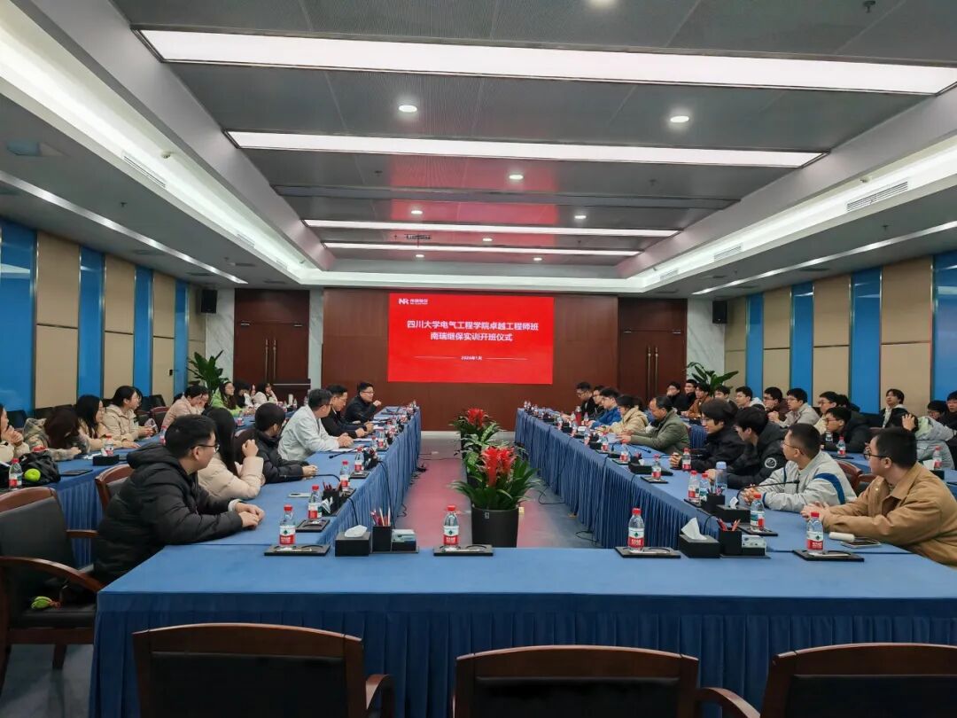 的合作情况,并对川大师生的到来表示欢迎。学院带队老师对南瑞继保公司的支持表示感谢,并对未来两周的实习安排进行了讨论。马文见工程师等领导向参与此次实习的各位师生介绍了南瑞继保公司的日常工作与生活基本情况。会上,南瑞继保公司的各位领导表达了对卓越工程师班同学们“在实习中产生自己的想法”及“思考未来职业规划,期待选择南瑞”的期望,卓工班全体同学表示将会珍惜此次实习机会,认真完成本次实习任务,并针对此次实习的内容积极与各位领导进行了沟通交流。