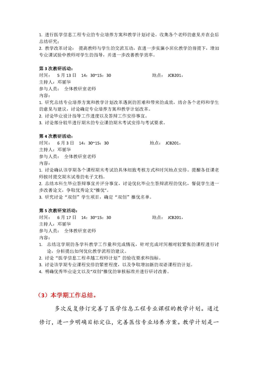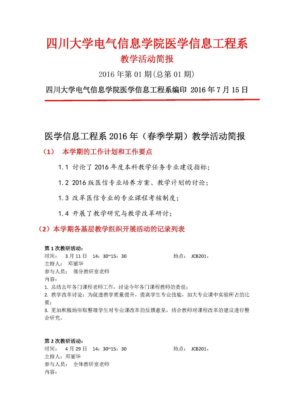 医学信息工程2016年(春季学期)教学活动简报