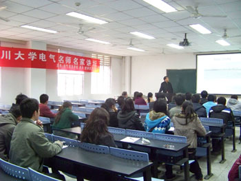 电气信息学院电气工程及其自动化专业2012级卓越工程师班成都振中电气实习总结会在望江校区基础教学楼B座104成功举办。出席本次总结会的嘉宾有电气信息学院副院长雷勇教授、电气工程系主任滕欢老师、电气工程系书记及卓工班班主任赵莉华老师、专业中心段述江老师、吴坚老师和辅导员何郁嵩老师。老师们的到场受到了同学们的热烈欢迎,同学们纷纷对老师们的关心照顾表示感谢。