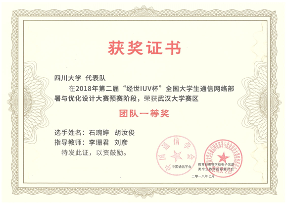 电气信息学院通信工程系的参赛同学在李珊君老师和刘彦老师的指导下,取得了预赛团队一二等奖的好成绩。其中由石琬婷、胡汝俊组成的一组荣获团队一等奖,由车畅、邢萌组成的二组荣获团队二等奖。