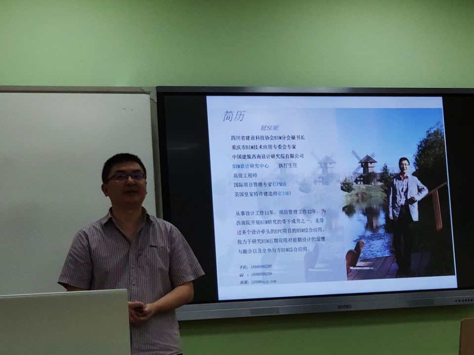 的学生们在基础教学楼A317共同聆听了由四川省建设科技协会BIM分会秘书长、中国建筑西南设计研究院有限公司BIM设计研究中心主任李锦磊老师主讲的建筑信息模型技术专题讲座。