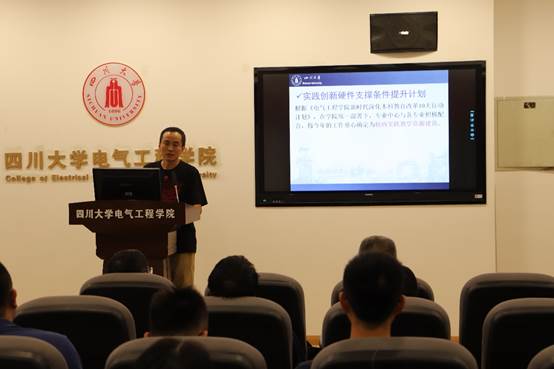 随后,学院4个基层单位领导分别代表各自单位做了19年上半年工作报告。电气工程系主任王渝红和自动化系主任佃松宜分别就两系对标10大行动计划的落实与执行情况作了总结汇报,并对未来的工作提出了计划和展望。各系在行动计划的指引下,锐意进取,经过不断努力,取得了丰硕的成果。同时,就目前工作中面临的各项困难,各系也认真分析,积极探索,依托学校和学院的支持,努力开创工作新局面,切实提升本科教育水平。