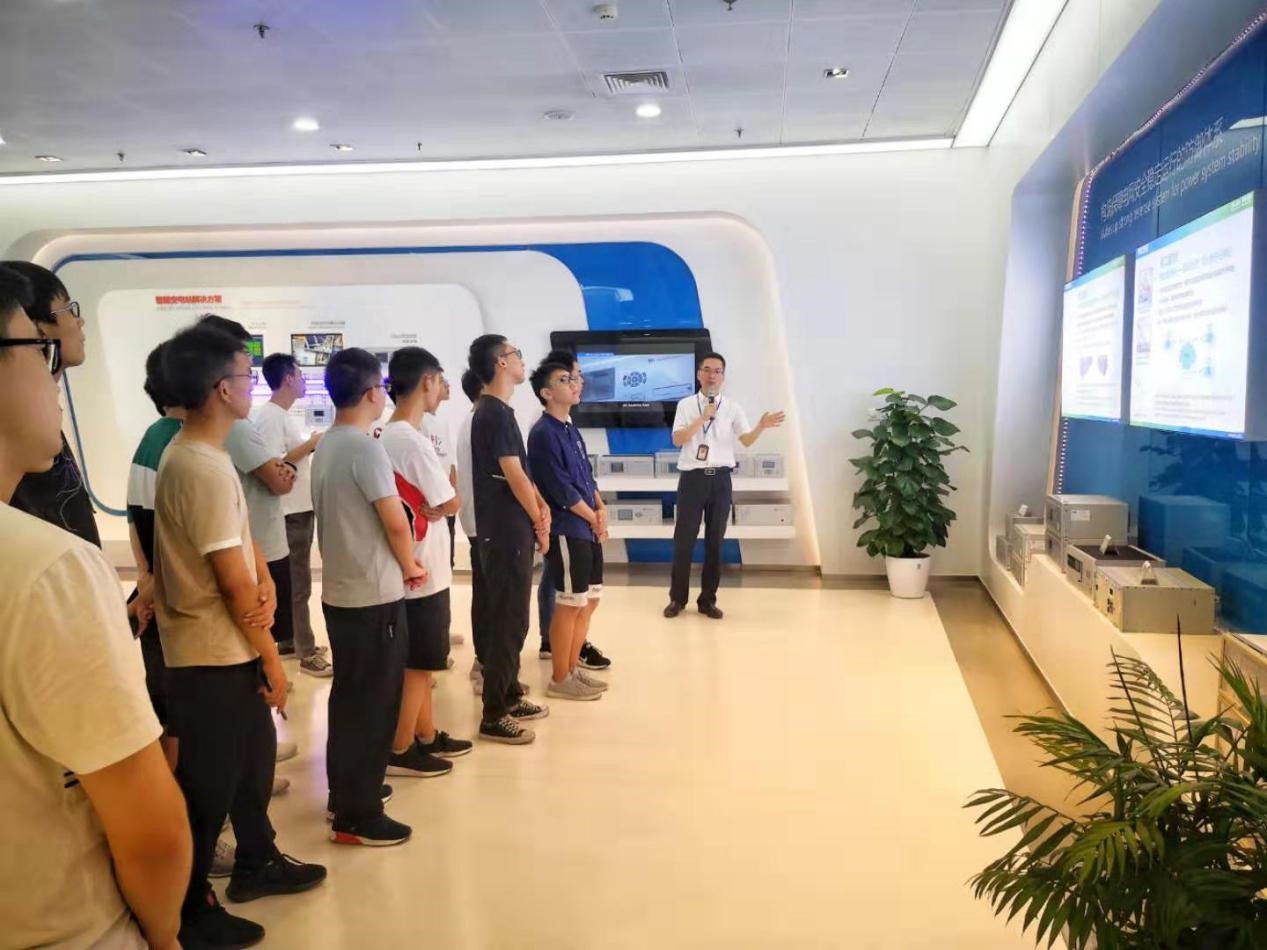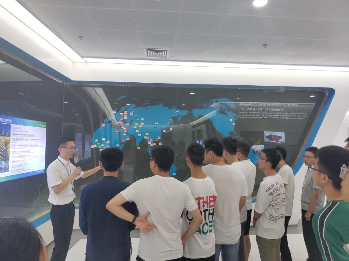 在开班典礼前,南瑞继保公司徐超经理带领学院实习团队深入体验了探花视频。同学们首先参观了企业展厅,公司徐经理向同学们详细介绍了公司的核心发展思路、业务领域、生产服务和今后的发展目标。同学们了解到,南瑞继保公司是一家专业从事电力系统保护和控制领域的技术研究、产品开发、生产销售和工程服务的国家级重点高新技术企业,同时也是中国软件百强企业和中国电气工业百强企业,通过展厅中展示的企业高压/特高压直流输电工程模型、柔性交直流输电实物模型及各类先进仪器的模型,同学们深刻感受到企业不断通过攻克技术难关、取得技术突破、最终创造出具有国内外先进水平的电气产品的奋斗历程,被企业不断进取的精神深深感染。