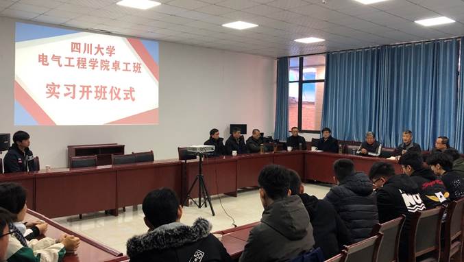 肖先勇院长、李长松副院长及电气工程及其自动化专业2016级卓越工程师班的同学们。聂在和董事长向在场师生们介绍了成都振中电气集团有限公司的基本情况、发展历程和实习条件,并希望卓工班的同学们能够在这为期15天的实习里有所收获。