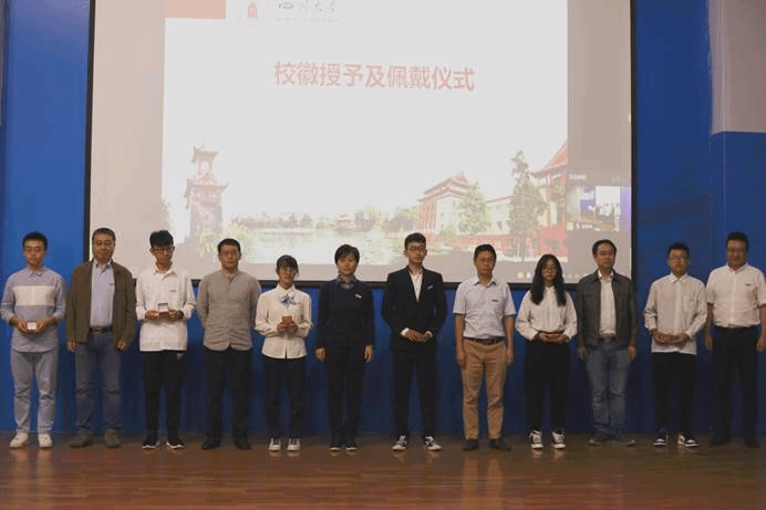 随后,进行了校徽的授予及佩戴仪式,学生代表与老师们合影留念。