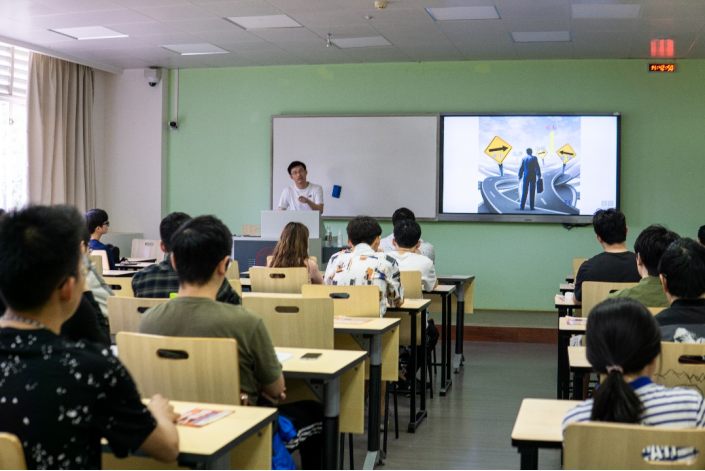 2019级本科102班班主任见面会在望江校区基础教学楼A座305教室顺利举行。102班班主任王顺亮老师担任主讲,并邀请了四位来自不同年级的本科生与研究生,与102班同学分享了关于毕业深造以及就业相关主题的经验。