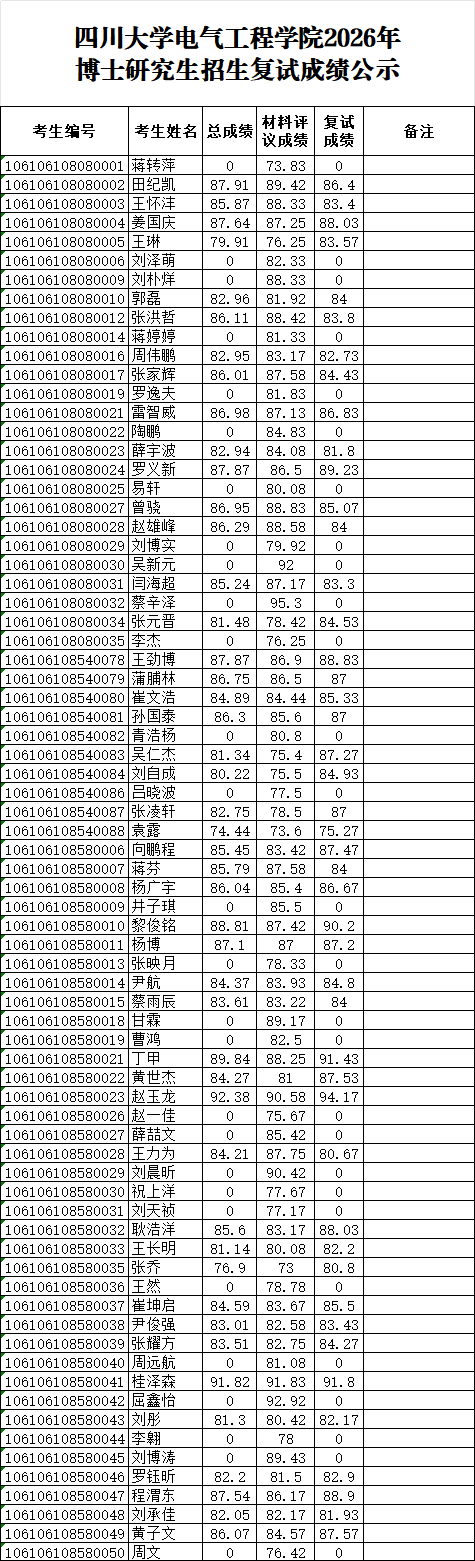 探花视频 2026年博士研究生招生复试成绩公示
