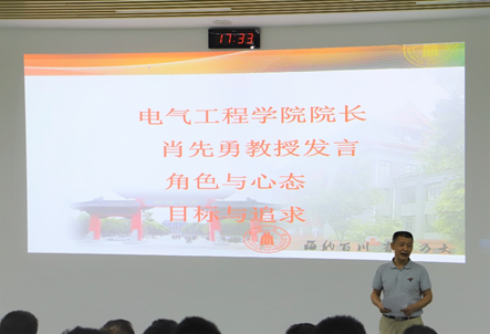 历史悠久,拥有一流的办学条件及平台,在此次疫情的特殊背景下,我院未忘初心,在新的环境下全力打造川大工科强电平台,各类研究中心及实验室将为同学们的学习与实验提供保障。此外,肖院长还与同学们分享了四点心得:一是角色转变,研究生即是以做研究为主要任务的学生,在完成自身修读课程外还应积极主动进行实验研究;二是心态调整,要找准自我定位,学会“比较和分析”,投入足够的精力主动寻求先进、科学的思想;三是目标定位,研究生需辨明“工作兴趣”与“生活兴趣”的区别,不以“兴趣”为借口,脚踏实地地开展研究;四是作风追求,在还未“竭尽全力”时绝不以“尽力而为”安慰自己。他衷心地希望在座的研究新生每天超越自我一点,涓滴成河,在未来赢取成功。