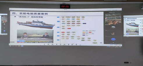 黄文焘教授首先介绍了船舰电力系统的特点、特殊性和发展历史以及舰船推动系统发展对于电力系统的影响。针对电能质量问题,黄教授分享了船舰电能质量扰动源、大功率负载突变、非线性设备电能质量干扰等方面的研究,介绍了三种电能质量的划分标准、电能质量指标限值和几类电能质量问题,并针对性地提出了软硬件相结合的解决方法;通过对比船用整流设备各项指标,分析得出船舰在不同需求部分需要应用不同的整流技术,并用亲自参与设计的“东方红3”综合科考船的案例介绍了船舰电力系统电能质量优化问题的研究。黄教授还为同学们简要介绍了船舰综合电力系统未来的发展方向,并提出“兴船报国,创新超越”,以此激励同学们努力学习、不断进步。