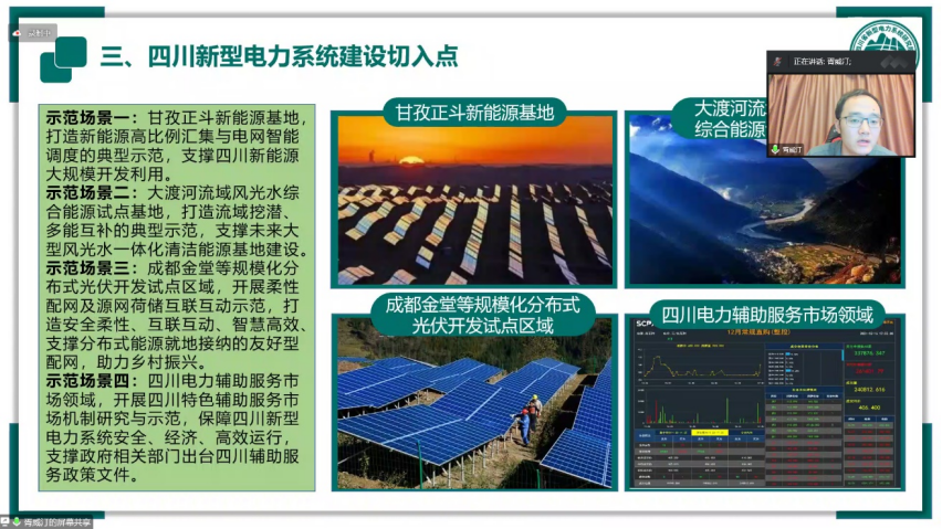 电力系统及其自动化专业,曾就职于电力设计院、国网能源院和省经研院,长期从事能源战略和电力规划工作。本次课程内容从新型电力系统的形式与背景、特征与内涵以及四川省新型电力系统建设切入点三方面展开。