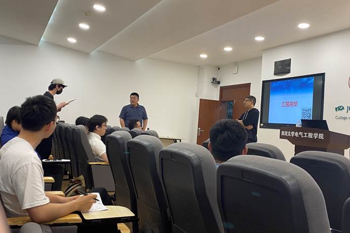 讲座上,陈主任通过视频向同学们深入浅出地介绍了电力市场交易的基本概念和电力交易的基本形式,并结合四川当前的电力供需形势,介绍了四川省电力市场化交易品种。随后,陈主任通过售电公司参与双边协商收购电量的案例分析,带领同学们从售电公司的角度更好地了解了电力市场运营的基本形式,并从中体会到了电力市场交易中存在的风险与机遇。