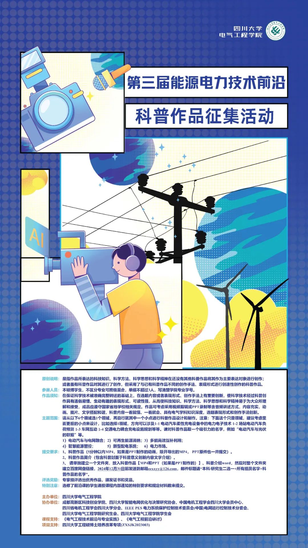 学生会协办,第三届能源电力技术前沿科普作品征集活动顺利开展。