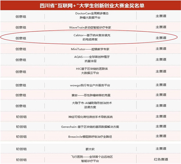 2018年9月1日至2日,第四届四川省“互联网+”大学生创新创业大赛在西南石油大学成功举办。截至8月15日,全省共有109所高校的264980余名师生参加此次大赛,报名参赛团队达58909支。我校709支参赛团队报名参赛,共荣获金奖14项、银奖9项、铜奖8项,金奖数位居全省第一。我院“Cabtor—基于纳米复合填充的电缆修复”团队在周凯老师的指导下,取得了省赛金奖的好成绩。