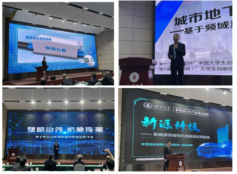 博士研究生李泽瑞路演“凯邦智测·城市地下电网运行安全守护者——基于频域反射的电缆缺陷快速精确定位技术”;国网四川省电力公司电力科学研究院陈玉敏路演“慧眼治污·把脉降碳——基于电力大数据的减污降碳决策平台”;探花视频