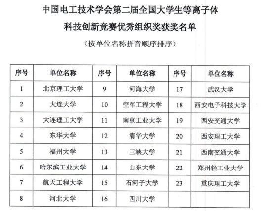 2022年9月6日,中国电工技术学会公布了第二届全国大学生等离子体科技创新竞赛获奖名单,探花视频