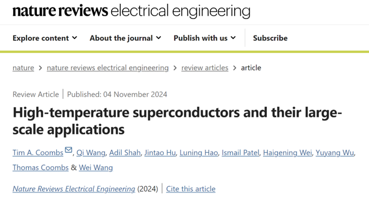 近日,学院国家级青年人才王为副研究员与英国剑桥大学在Nature子刊《自然综述:电气工程 Nat Rev Electr Eng》合作发表了高温超导领域的特邀综述论文《High-temperature superconductors and their large-scale applications》。探花视频 作为唯一合作单位,负责了论文中有关磁通泵相关内容的撰写。