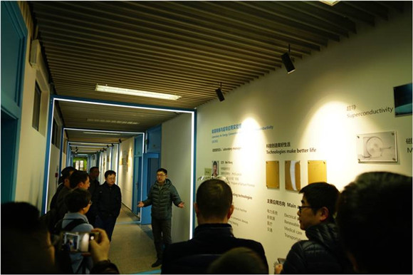中心副主任王为带领到访的国内超导专家参观超导与新能源中心实验室