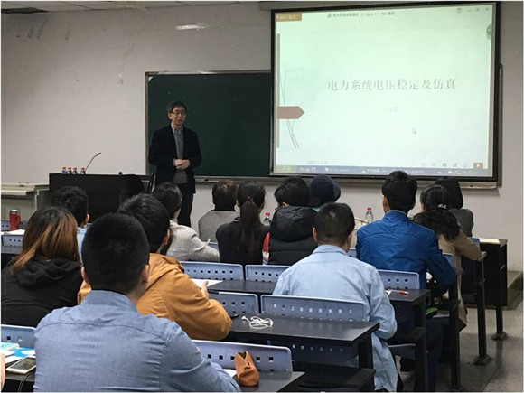 为了让同学们与国际接轨,更好地了解国际电力系统关键技术,2018年3月13日上午10点,美国R&D Engineering公司副总裁,IEEE fellow刘海军教授在电气信息学院基础教学教B104教室举行了“电力系统电压稳定和仿真”的学术讲座。电气信息学院院长肖先勇教授、电气工程系主任王渝红教授、相关学科教师和硕博研究生参加了此次讲座。
