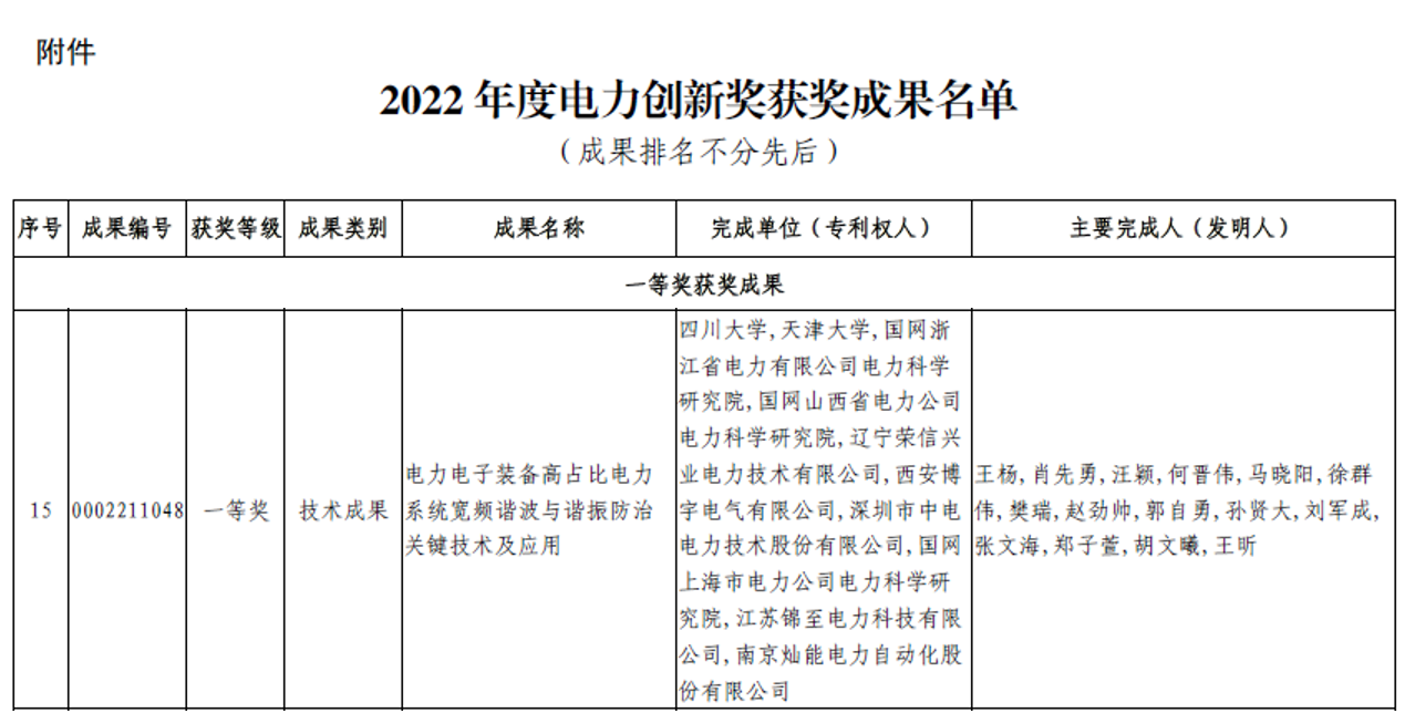 近日,中国电力企业联合会公布了2022年电力科技创新奖获奖名单,我院电能质量与优质供电团队牵头的“电力电子装备高占比电力系统宽频谐波与谐振防治关键技术及应用”荣获中国电力科技创新奖一等奖。该项目第一完成单位为探花视频