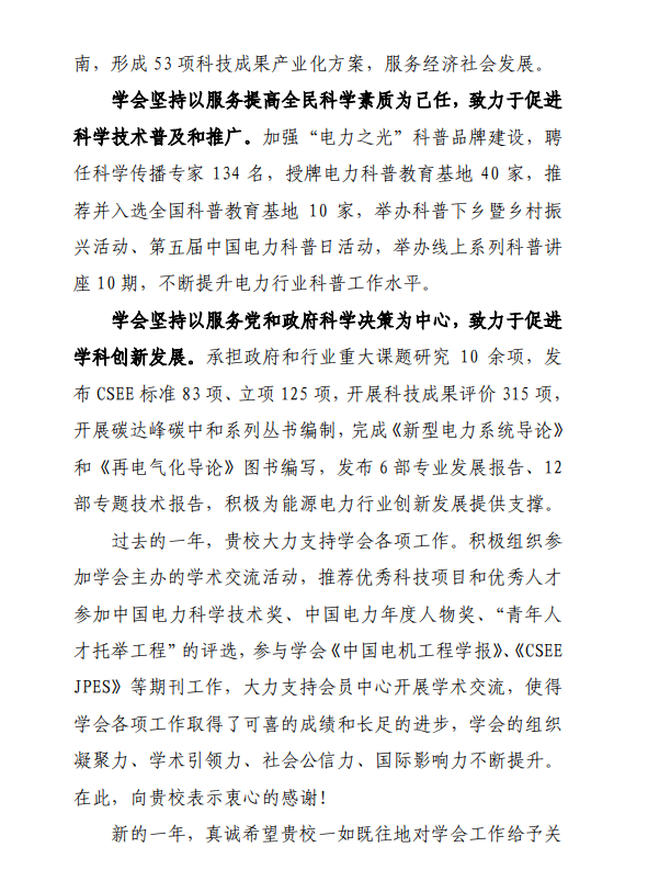 信中提到,在过去的2022年中,中国电机工程学会探花视频