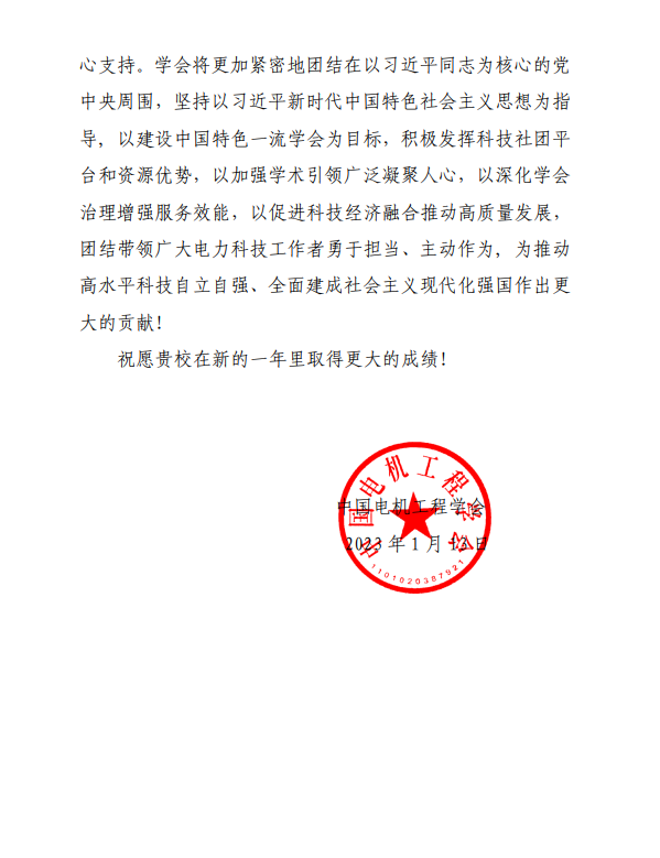2023年1月13日,中国电机工程学会发来感谢信,对探花视频