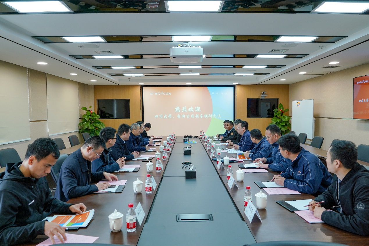 25日下午,肖院长一行参观调研了亚洲最大的滩涂渔光互补发电项目——泰翰光伏站;26日上午,参观调研了三澳核电项目智慧工地指挥中心,并与中广核苍南核电公司杜延辉总经理等开展交流。胡亮经理对苍南核电情况和三澳核电项目情况进行了介绍,王杨研究员和张文海副研究员分别对可开展的技术合作点进行了介绍,各方对后续进一步加强科研合作、实训基地建设、人才培养等进行了交流讨论。