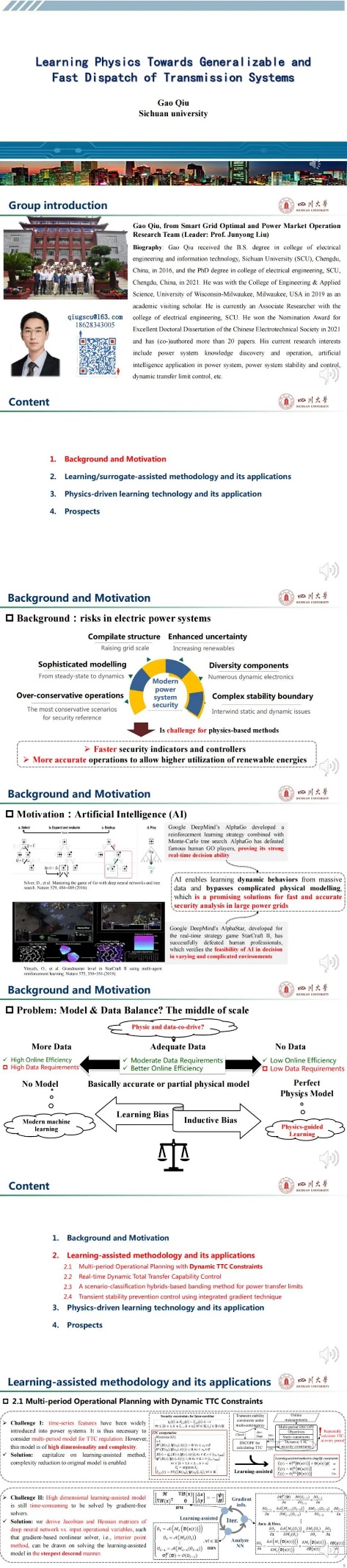 在2023 the 6th International Conference on Energy, Electrical and Power Engineering (CEEPE 2023)会议上,学院邱高副研究员作了题为“基于物理驱动学习的输电网高泛化快速调度技术”的报告,经本人授权,与大家分享。