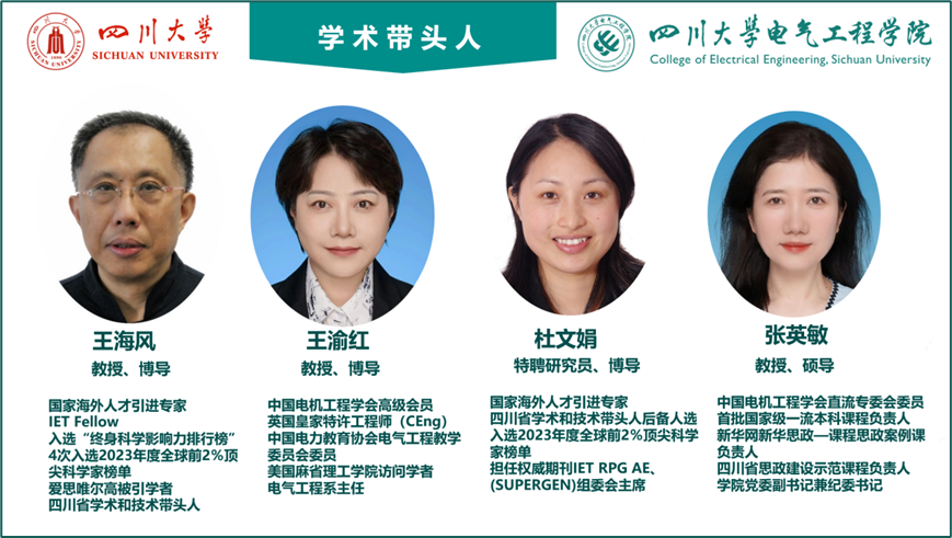 电力系统稳定与高压直流输电团队,是我国最早从事直流输电相关研究的团队之一,创始人为李兴源教授,现任负责人为博士生导师刘天琪教授*,成员包括王海风教授*、王渝红教授*、杜文娟教授*、张英敏教授*、莫思特*、曾琦*、王顺亮*、何川*、马俊鹏*、李保宏*、印月*、南璐*、彭乔*、郑宗生*、廖建权*、高仕林*、江琴*、冷敏瑞、焦宁。团队有教授5人,副教授/副研究员12人,讲师/助理研究员3人,博导6人,硕导12人。此外,团队拥有汤广福(中国工程院院士)、吴磊(Stevens Institute of Technology 副教授)、贺之渊等高端学术顾问和外聘博导。