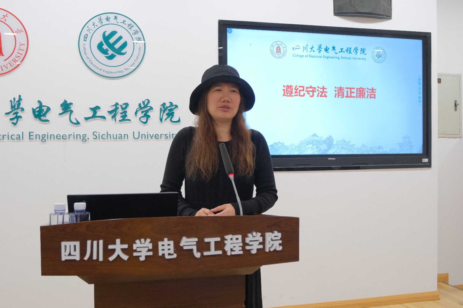 12月8日下午,学院党委副书记兼纪委书记张英敏以“遵纪守法 清正廉洁”为题,从遵纪守法、勤政为公、廉洁自律等三个方面对新一届党支部书记、新任教工支部委员们进行了廉政教育。