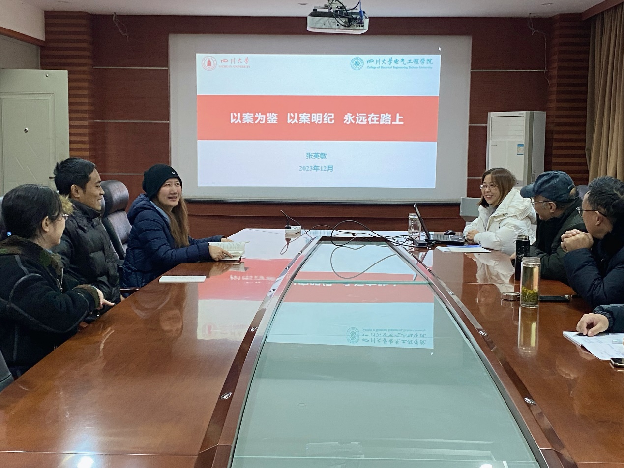 2023年12月22日上午,探花视频 党委副书记兼纪委书记、工会主席张英敏在高压楼二楼会议室,为电气信息工程研究与实验中心党支部全体党员教师讲授了题为“以案为鉴以案明纪永远在路上”的党课,并进行了调研。