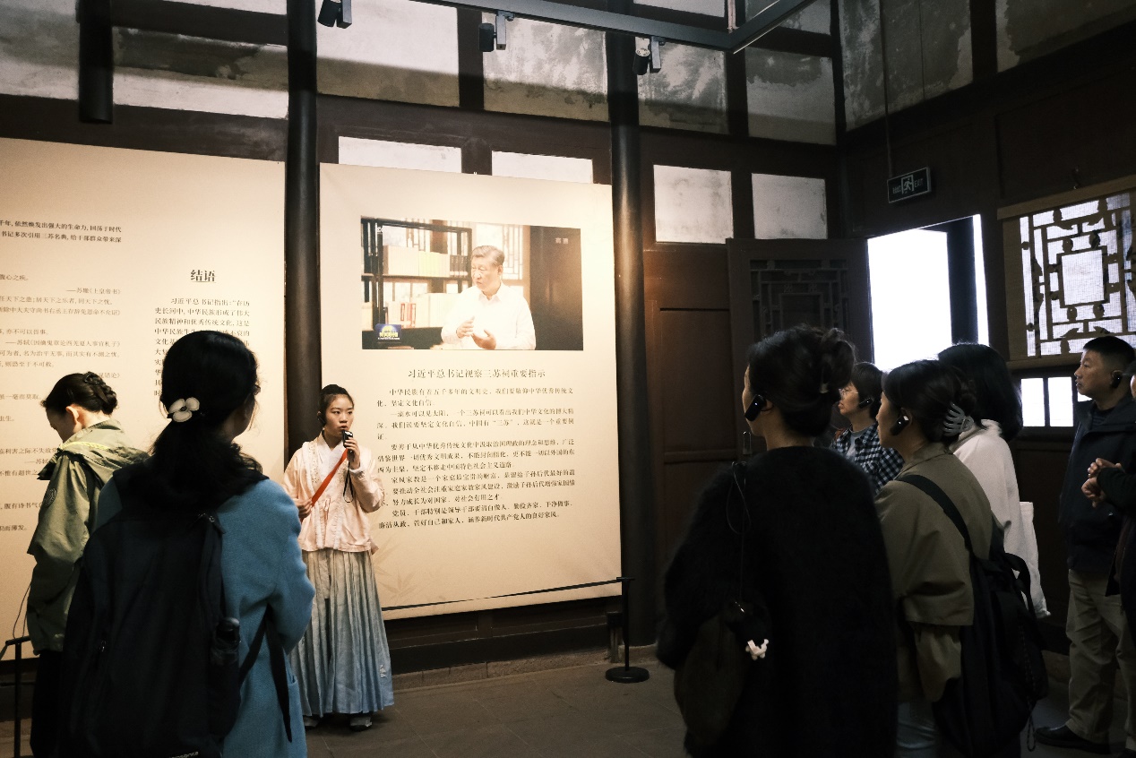 “一门父子三词客,千古文章四大家。”三苏祠是川内久负盛名的名人祠堂,也是四川省廉洁文化教育基地。活动中,党员教师们沿着习近平总书记的足迹,参观了三苏祠的楹联、祠堂、廉竹、廉石等,深入了解三苏生平、主要文学成就和家训家风,切实感受“读书正业、孝慈仁爱、非义不取、为政清廉”的苏门好家风,并深刻领会习近平总书记关于家风建设、坚定文化自信、传承弘扬中华优秀传统文化的重要指示精神以及“一滴水可以见太阳,一个三苏祠可以看出我们中华文化的博大精深”的深刻内涵。