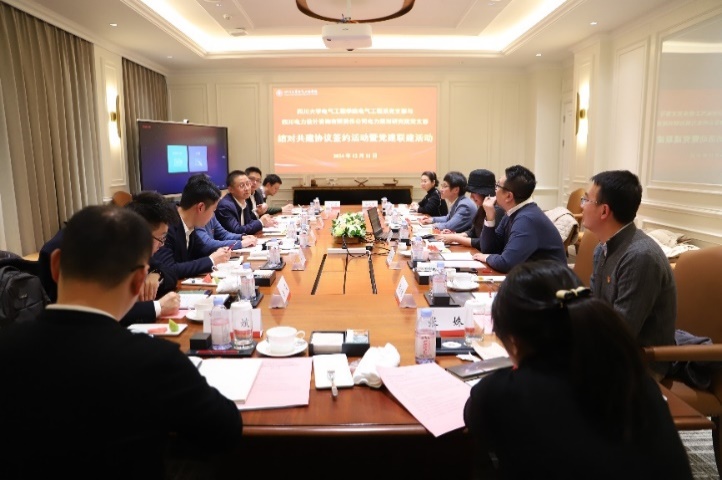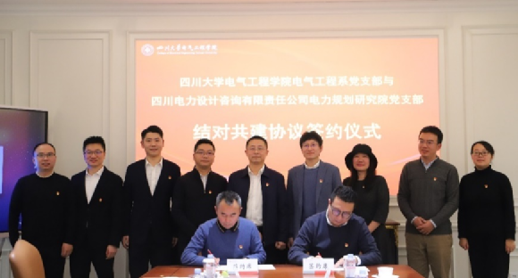 学院电气工程系党支部书记、院长助理陈实,四川电力设计咨询有限责任公司电力规划研究院党支部书记莫骏签署结对共建协议。