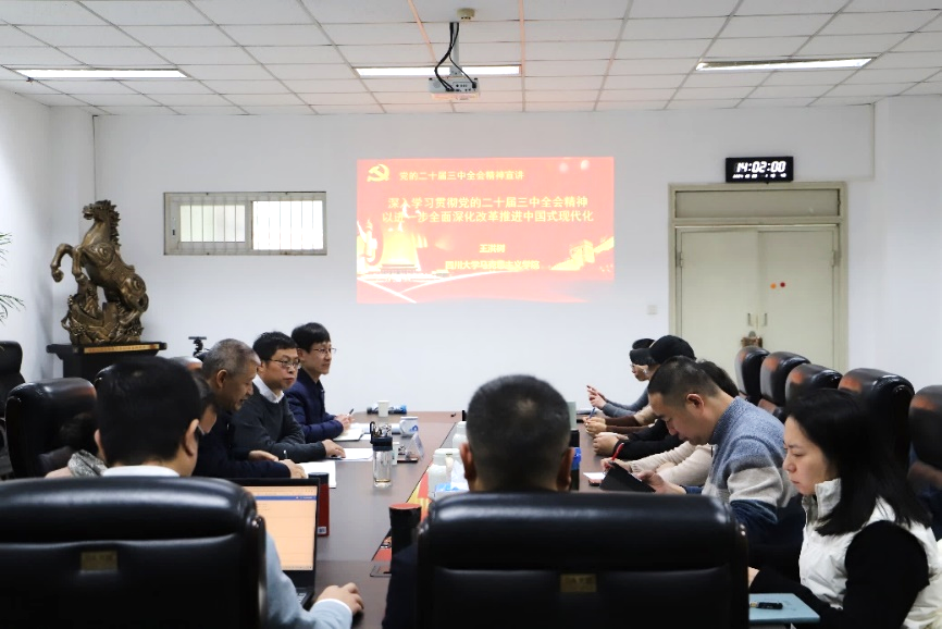 学院党委书记赵昱辉代表学院向王洪树教授带来的精彩报告表示衷心感谢。他说,辅导报告对二十届三中全会召开的历史背景、重大意义、重要举措作了全面系统梳理,站位高远、内涵丰富、深入浅出、收获丰硕,是对全会精神学习贯彻的进一步拓展、深化和提升。四川走在中国改革的前列,川大也是高校改革的先锋,在“十四五”规划总结收官、“十五五”规划谋划布局关键时刻,学院要深入学习贯彻二十届三中全会精神,进一步全面深化改革,加快推进学院高质量内涵式发展。