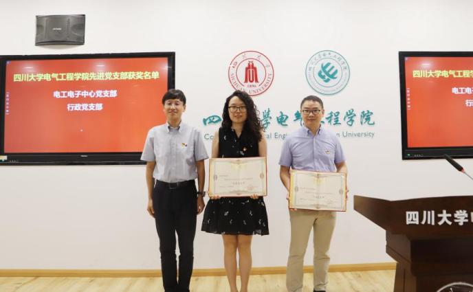 赵昱辉书记为电工电子基础中心党支部、行政党支部颁发学院“先进党支部”荣誉证书