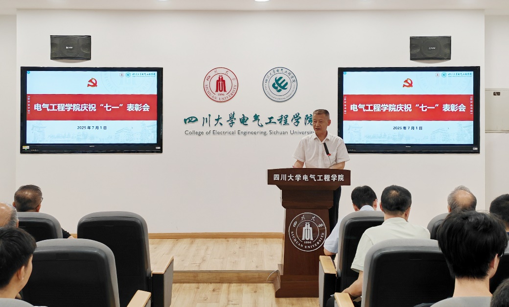 在基础教学楼B206报告厅隆重召开庆祝“七一”表彰大会。学院领导班子成员,院长助理,各系、中心负责人,专职组织员,各党支部书记、副书记、支部委员,受表彰的“两优一先”代表,师生党员代表、离退休党员代表等参加了会议。院长肖先勇主持会议。