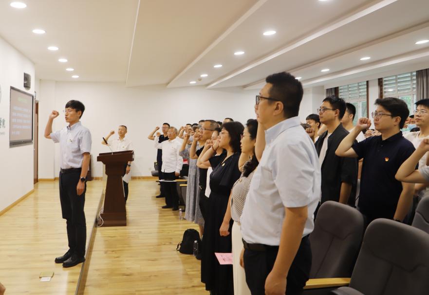 赵昱辉书记带领全体党员重温入党誓词。面对鲜红党旗,党员同志们庄严宣誓,以铿锵誓言回望初心使命。