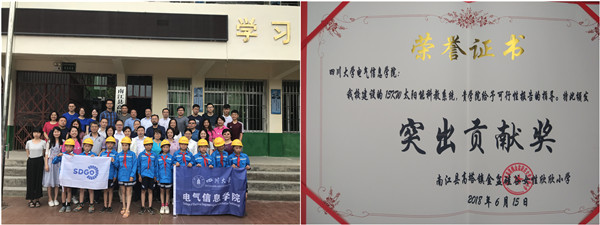 电气信息学院、中国社会工作联合会、IEEE PES成都专委会、美国硅谷女性协会、上海临港弘博新能源发展有限公司等捐赠的15千瓦屋顶光伏系统暨并网发电仪式在四川省巴中市南江县金盆小学隆重举行,各捐赠方代表参加了启动仪式。