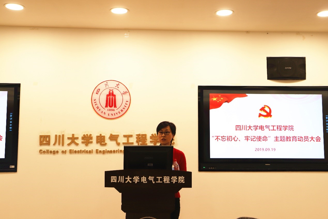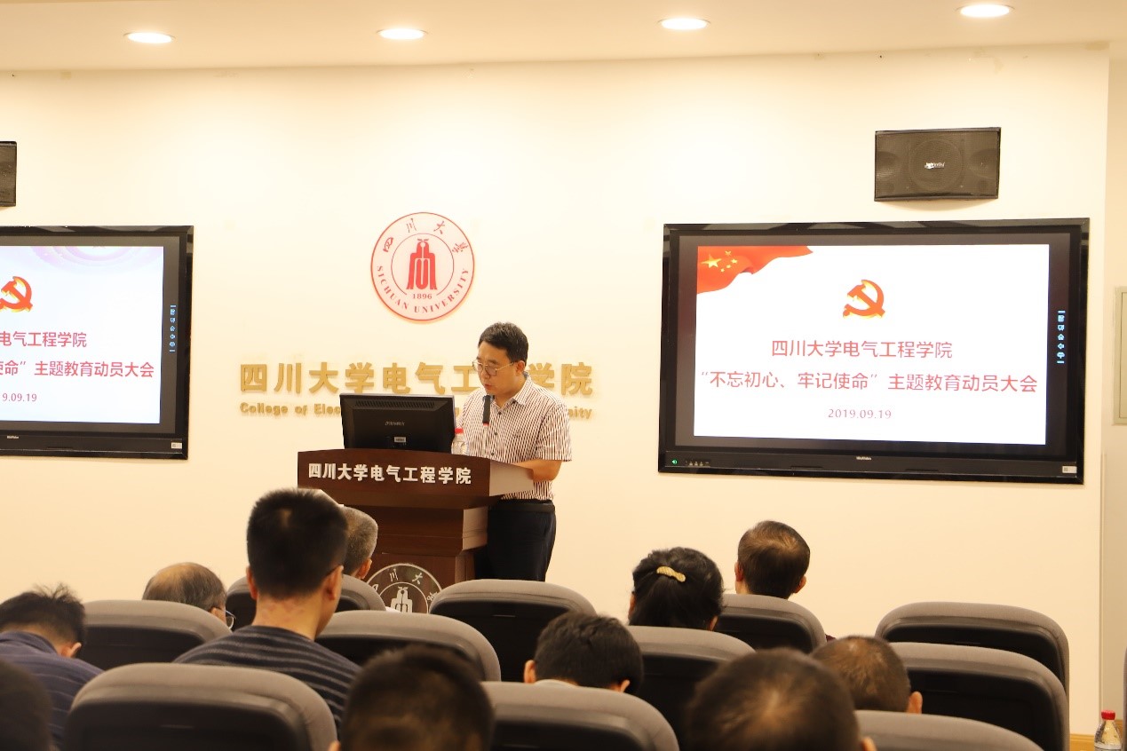 肖先勇院长在主持讲话中对认真开展好学院主题教育对全体党员提出三点要求:一是要以高度的政治责任感,按照中央、学校精神和学院的总体方案,精心组织,自觉行动,扎实推进学院主题教育的深入开展;二是要紧紧围绕为党育人、为国育才,突出党的政治建设,牢记教育报国初心,肩负立德树人的使命,为培养德智体美劳全面发展的社会主义建设者和接班人作出应有贡献;三是要把开展主题教育与加快推进学院“一流学科、一流专业”建设结合起来,与提升学院核心竞争力、落实各项重点工作结合起来,与实现学校“两个伟大”的目标结合起来,确保学院主题教育高质量开展。