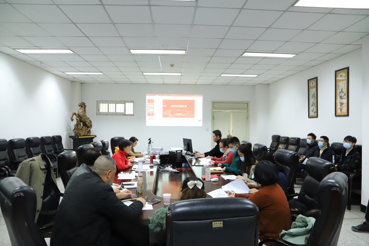 2020年度党支部书记述职评议会暨党支部标准化规范化建设验收会在基础教学楼A座220会议室召开。学院党委书记韩芳,党委副书记兼纪委书记张英敏,党委副书记戴婷婷,工会主席黄顺良,专职组织员陈曦,党政办主任邓丽华,学院全体教职工、学生党支部书记及部分党员代表参加了此次会议。