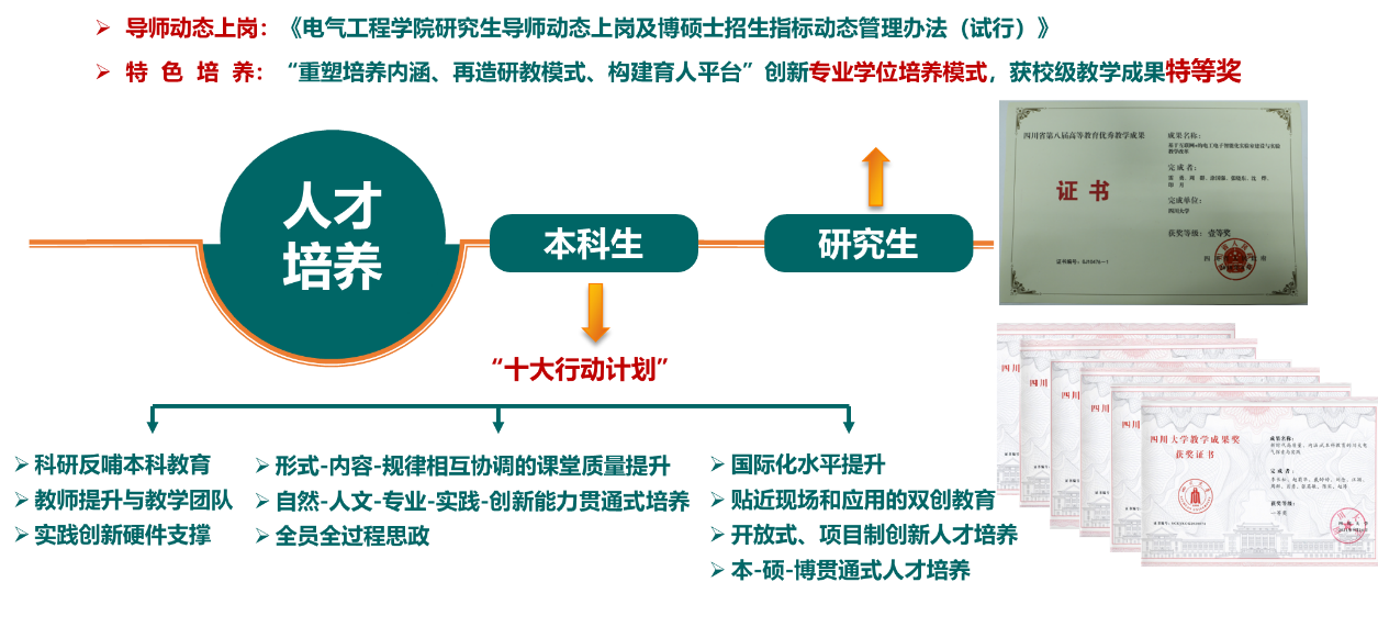 这十年,学院着力优化调整学科专业,明确以电气工程和控制科学与工程两个一级学科建设为核心。2018年以来,每年召开学科建设发展咨询理事会,邀请10余位院士、20余位行业专家每年围绕学院重点工作确定主题召开会议,为学院发展建言献策。学院抢抓发展机遇,凝练学科特色,形成了以“水-风-光-氢-电-气-储”综合能源、交直流输配电系统稳定与控制、能源电力系统数字化智能化、电力扰动与优质供电、先进能源电气材料与装备等为特色的电气工程学科方向,以及以先进感知与自主控制、智能检测与自动化装置、医学人工智能等为特色的控制科学与工程学科方向,具有川大风格的电气学科特色愈发鲜明。