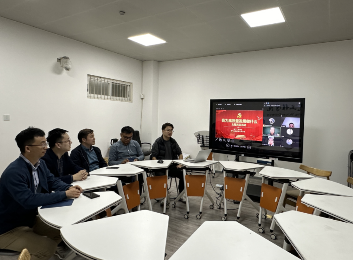 党员教师主要从学科发展、服务需求、教学工作、人才培养等不同维度对“我为高质量发展做什么”进行了发言讨论。在学科发展方面,党员老师表示要做好顶层规划,通过学科发展咨询理事会扩大电气工程专业在全国的影响力。在学科结构上从电力系统扩展到装备材料,做好学科教师的人才储备和培养,形成具有川大特色的电气工程学科方向。在服务需求方面,老师们表示要以服务国家为目标,立足电力行业,解决工程生产中的切实电气科学问题,为各行各业高质量发展保驾护航。在大讨论中,党员老师们讨论最多的还是关于教学和人才培养方面的问题,有党员老师表示打铁还需自身硬,要不断提升学术、教学修为,把自己锻炼为高质量优秀的教师。也有老师表示,提升自身能力也需要多走出去,通过跨学科跨学校的合作和专业交流,促进新思维和创新的涌现。在学生培养方面,大多数老师都表示要以“德高为师,身正为范”为标准,提升课堂教学质量,注重引导学生思想认识,落实立德树人的根本任务,服务高质量的人才培养。