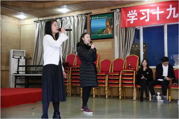 在行政两位年轻老师演唱完歌曲《听,是谁在歌唱》后,文艺活动迎来了第一个活动高潮——抽奖,礼物虽小,欢乐多多。