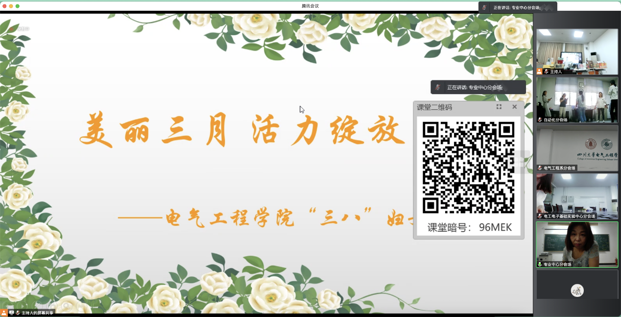 活动过程中,学院采用腾讯视频会议和雨课堂相结合的方式,精心设立了直播主会场,各单位设立5个运动分会场同步跟播。主播首先在主会场热情满满地向大家介绍了此次活动的规则,为大家展示了准备的丰厚奖品。随后,当主播间运动健身视频音乐响起,各分会场女教师们便跟着律动的音乐运动起来,拉伸、跑跳……一连串有氧运动之后,老师们充分体会了运动带来的畅快之感。三段健身操间隙中,直播间还为老师们组织了抽奖环节,中奖的老师们都无比开心。