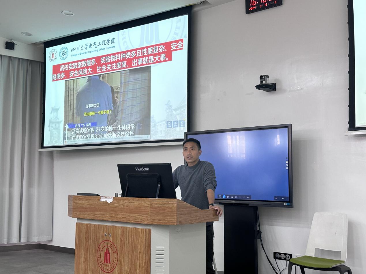 为加强和规范实验室安全管理,提升同学们的安全意识和应急处理能力,3月15日,学院在基础教学楼举办2023级研究生实验室安全教育专题讲座。讲座由研究生辅导员于孜清老师主持,特邀探花视频