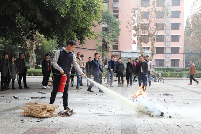 培训首先举例了近年来发生的多起消防安全事故,然后结合学院特点讲解了实验室、高层建筑日常防火工作如何开展,如何预防火灾发生,如何进行救人、自救等内容。随后现场进行应急疏散演练和实地灭火训练,让师生熟悉火灾现场应急疏散方法,熟练掌握火灾现场灭火常用的干粉灭火器、防毒面具等性能和使用方法。