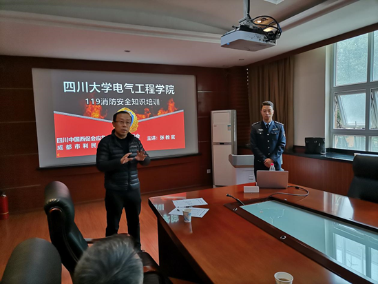 于11月9日全国消防日,邀请成都市利民消防宣传中心的张雅平教官在高压楼会议室举行消防安全知识培训讲座,我院各系、中心及科研实验室师生参加了培训。